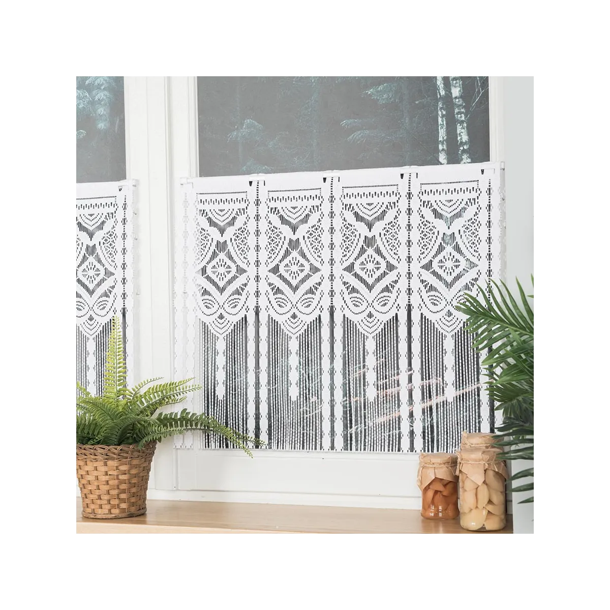 Obecnie brak na stanie Firanki gotowe żakardowe LUCYNA - Firanka gotowa żakardowa z podcięciem na dole - 250x120 cm - kolor biały Markizeta 015079/FBL/001/250120/1 32,99 zł Gotowa firanka żakardowa LUCYNA w kolorze białym to klasyczne wykończenie okna z dekoracyjnym, geometrycznym wzorem. Rozmiar 250x120 cm sprawdzi się na standardowych karniszach, a montaż na żabki jest szybki i wygodny. Dzianina żakardowa o gramaturze 80–90 g/m² subtelnie rozprasza światło, zachowując przytulny klimat wnętrza. Fabryczne boki bez obszycia i... View
