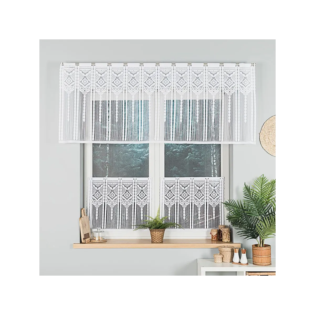 Firanki gotowe żakardowe MODESTA · Firanka gotowa żakardowa z podcięciem na dole · 250x80 cm · kolor biały Markizeta 017173/FBL/001/250080/1 22,99 zł Gotowa firanka żakardowa MODESTA w kolorze białym to klasyczna dekoracja okna z eleganckim motywem ornamentów. Rozmiar 250x80 cm sprawdzi się jako firana pojedyncza, a podcięcie na dole dodaje jej lekkości. Dzianina żakardowa (100% poliester) jest trwała i łatwa w codziennym użytkowaniu. Model zawiesisz na żabki, a fabryczne boki nie wymagają obszycia. Dodaj do koszyka