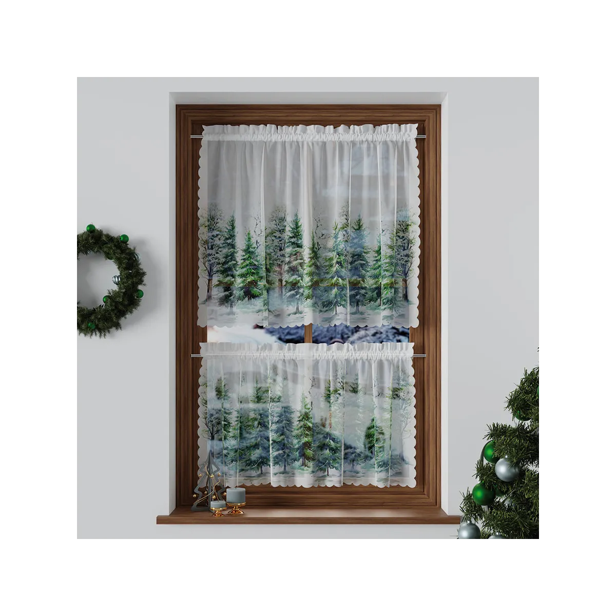 Świąteczne zazdrostki woalowe z motywem zimowego lasu