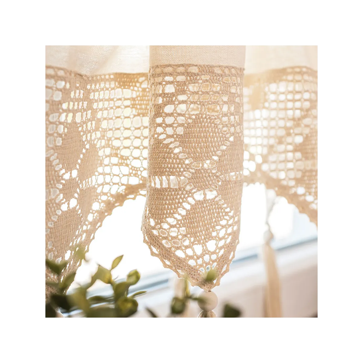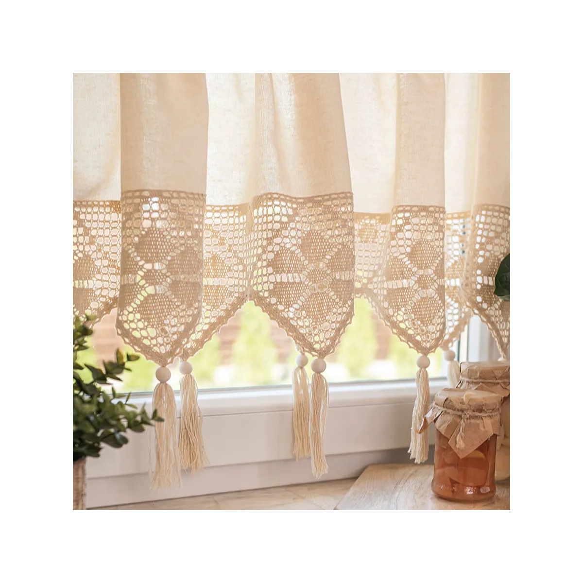 RACHELA – zazdrostka gotowa z ażurem 100x90 cm, kolor kremowy. Stylowa dekoracja okna z ażurowym wykończeniem, która rozświetli wnętrze i doda mu przytulności w stylu boho lub vintage. Idealna do kuchni, jadalni i salonu. Szybki montaż, łatwa pielęgnacja, ponadczasowy wzór.