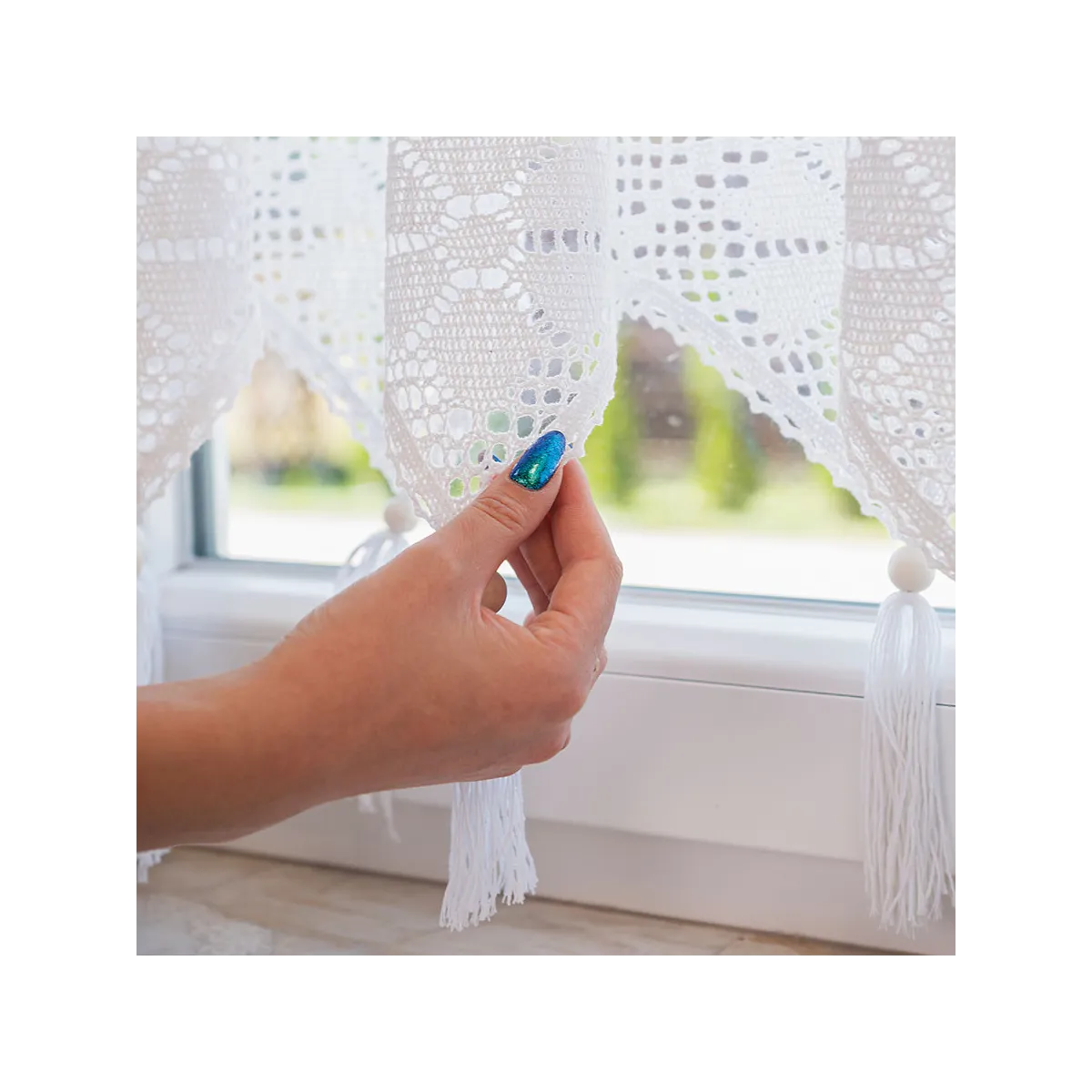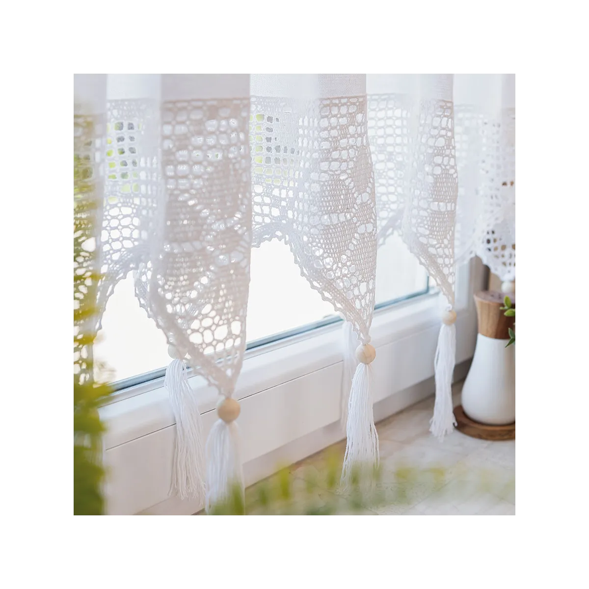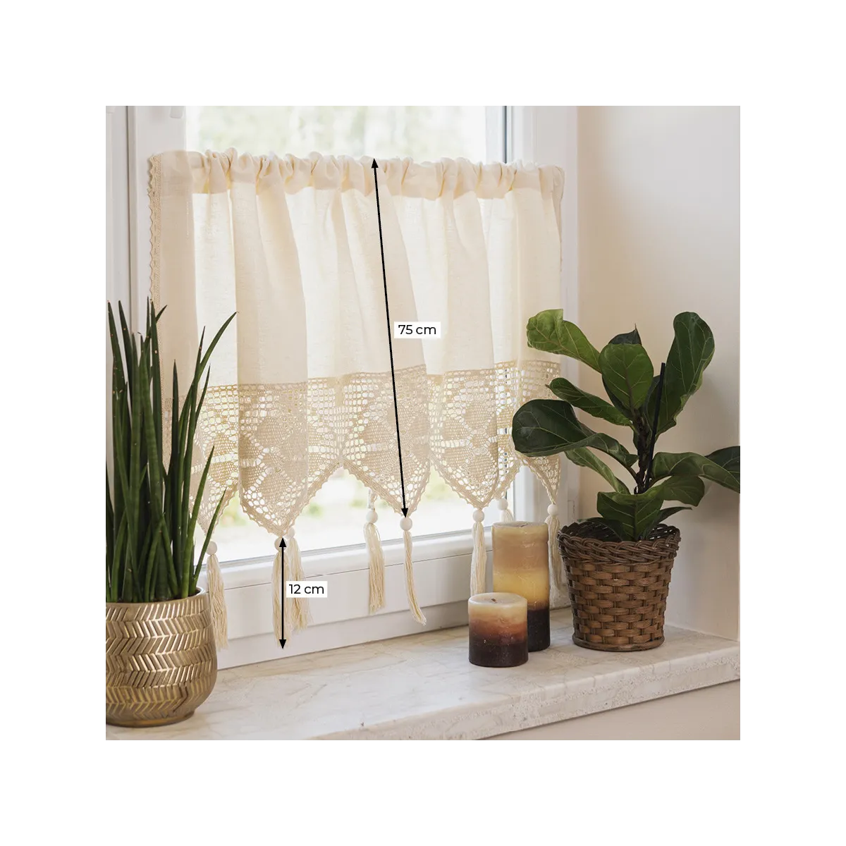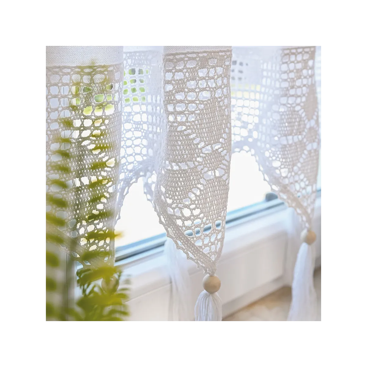 Odmień swoje wnętrze z zazdrostką RACHELA w śnieżnobiałym kolorze o wymiarach 150x75 cm! To gotowa firanka z efektownym, ażurowym dołem i delikatnymi frędzlami, które nadają jej lekkości i wyjątkowego charakteru. Biały kolor pięknie rozświetla przestrzeń, optycznie ją powiększa i wprowadza świeżość do każdego pomieszczenia. Ażurowy wzór inspirowany rękodziełem podkreśla styl boho oraz vintage, a uniwersalny design sprawia, że zazdrostka doskonale komponuje się z zielenią roślin i dodatkami z naturalnych materiałów. To idealny wybór dla osób, które cenią ponadczasową elegancję i praktyczne rozwiązania w dekoracji okien. 🤍