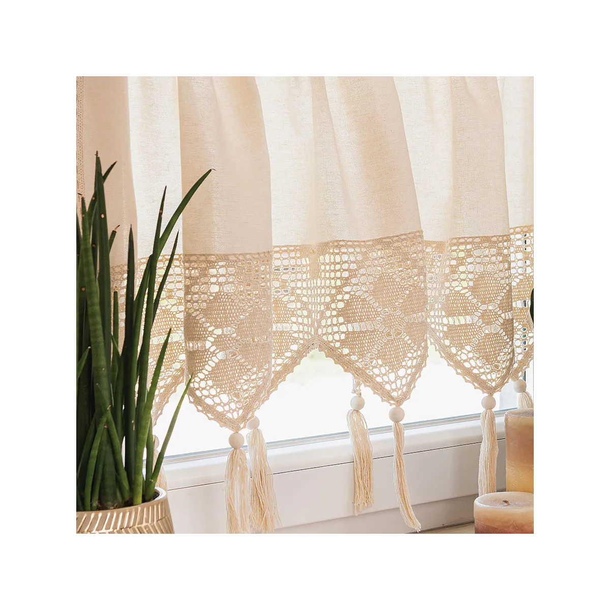 Wprowadź do swojego domu wyjątkowy klimat dzięki zazdrostce RACHELA w kremowym odcieniu o wymiarach 150x75 cm! To gotowa firanka z efektownym, ażurowym dołem, która zachwyca subtelnym wzorem i naturalną kolorystyką. RACHELA doskonale łączy klasyczną elegancję z nutą stylu boho i rustykalnego. Jej kremowy kolor pięknie rozświetla przestrzeń, a misterny ażur z frędzlami wprowadza przytulny, domowy nastrój. Wykonana z wysokiej jakości bawełny z domieszką poliestru, jest miękka, trwała i łatwa w pielęgnacji. Taki dodatek świetnie komponuje się z zielenią roślin i naturalnymi akcentami, tworząc wyjątkową atmosferę w każdym wnętrzu. 🤍