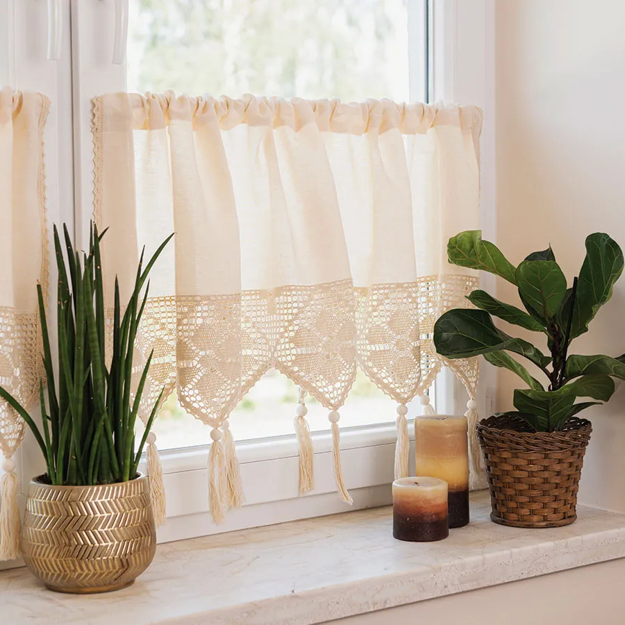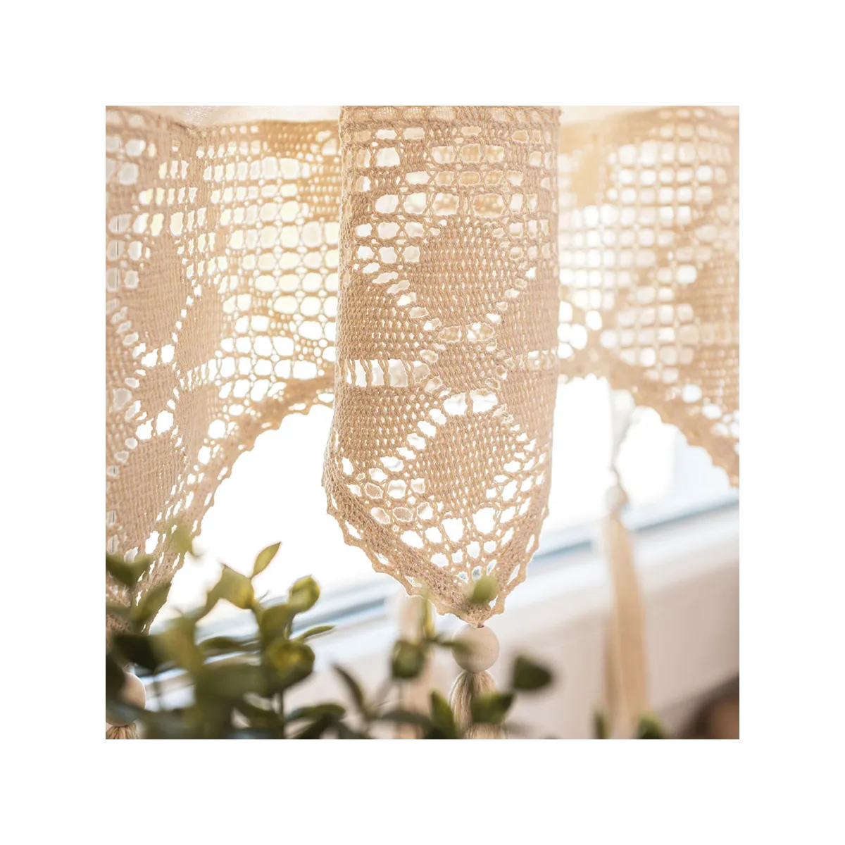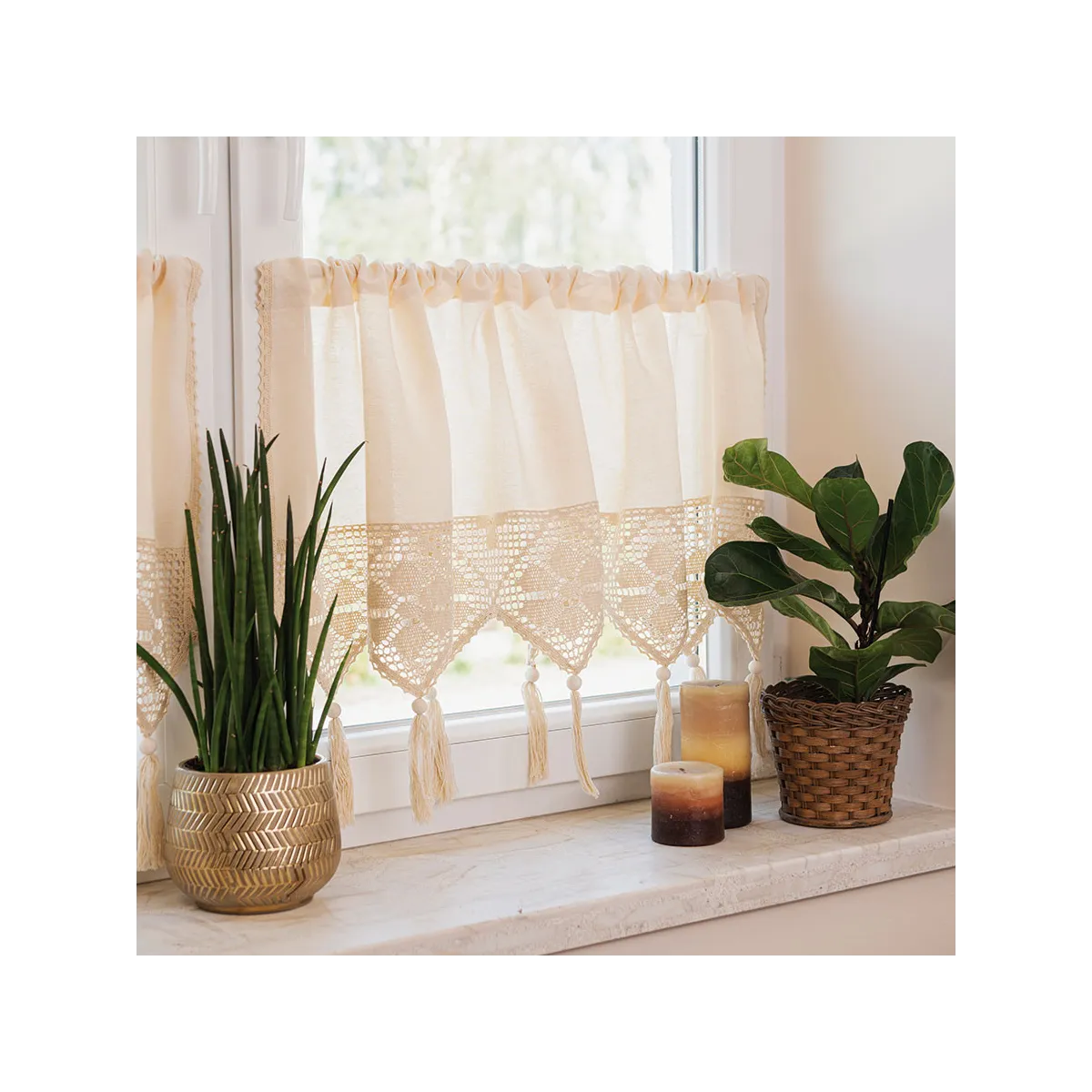 RACHELA – zazdrostka gotowa z ażurem 200x45 cm, kolor kremowy. Stylowa dekoracja okna z ażurowym wykończeniem i naturalnym akcentem, która rozświetli wnętrze i doda mu przytulności w stylu boho lub vintage. Idealna do kuchni, jadalni i salonu. Szybki montaż, łatwa pielęgnacja, wyjątkowy wzór.
