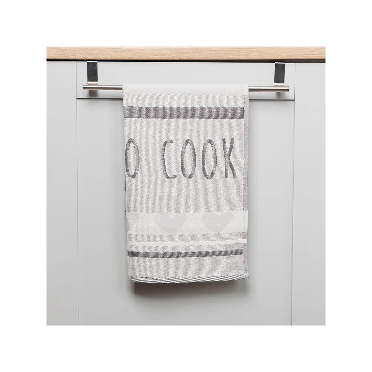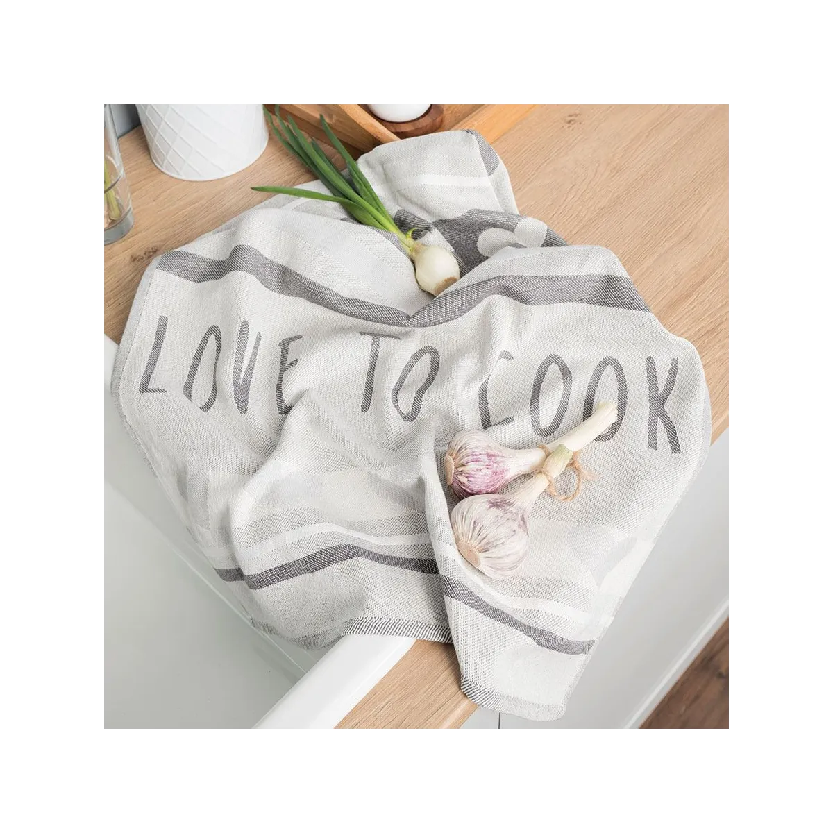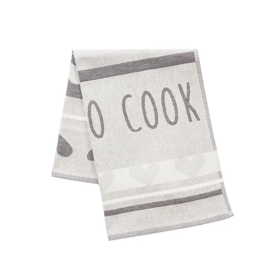 Szara ścierka kuchenna COOK w rozmiarze 50x70 cm to mały dodatek, który robi wielką różnicę! Wykonana w całości z naturalnej, miękkiej bawełny, zachwyca prostym, a zarazem efektownym wzorem z napisem COOK oraz subtelnymi szaro-białymi paskami. Odcień uniwersalnej szarości dopasuje się do każdej kuchennej aranżacji, od klasyki po nowoczesność, a funkcjonalna struktura grubego płótna gwarantuje doskonałą chłonność i miękkość w dotyku. Dzięki tej ściereczce banalne porządki zamienią się w małą przyjemność każdego dnia! 🍽️✨