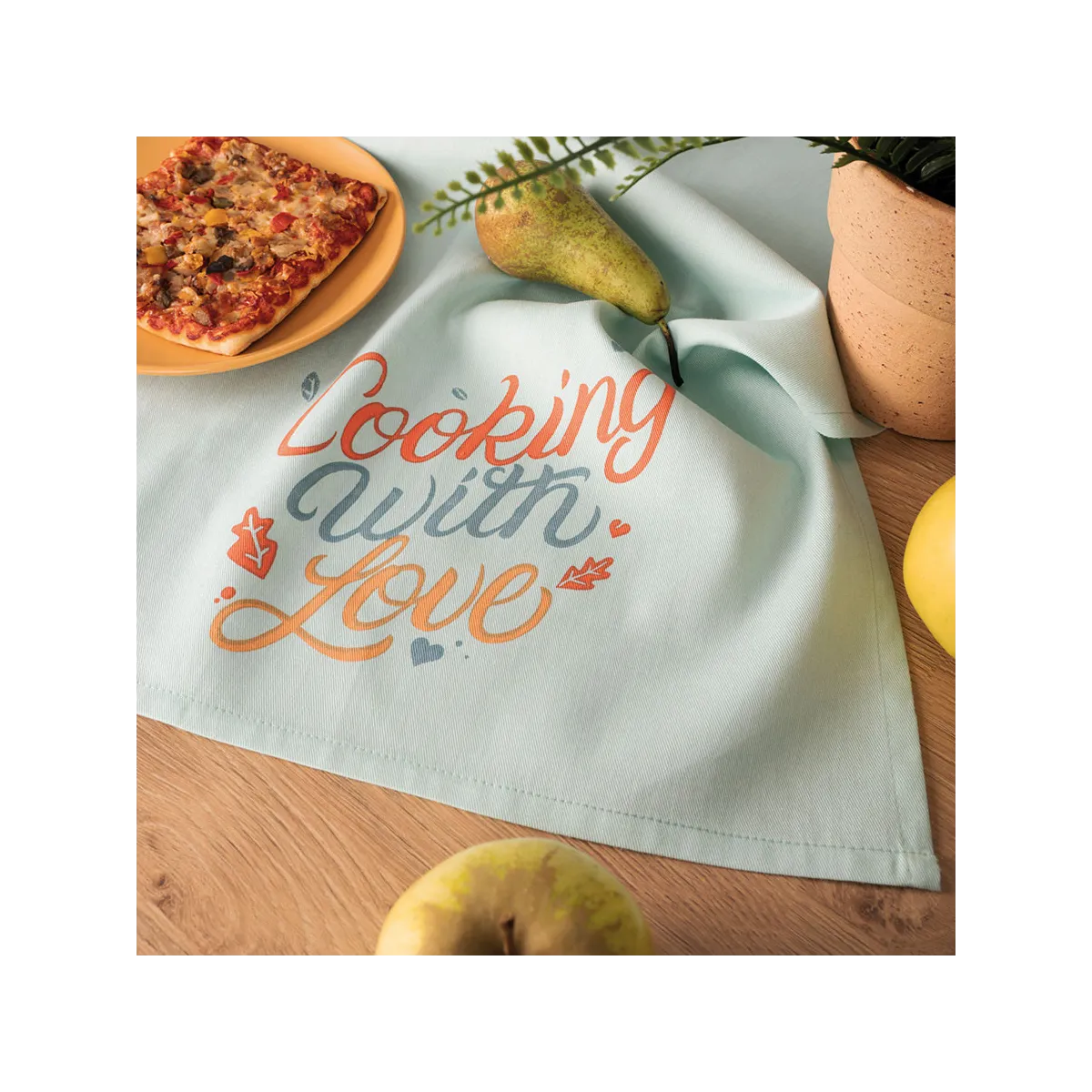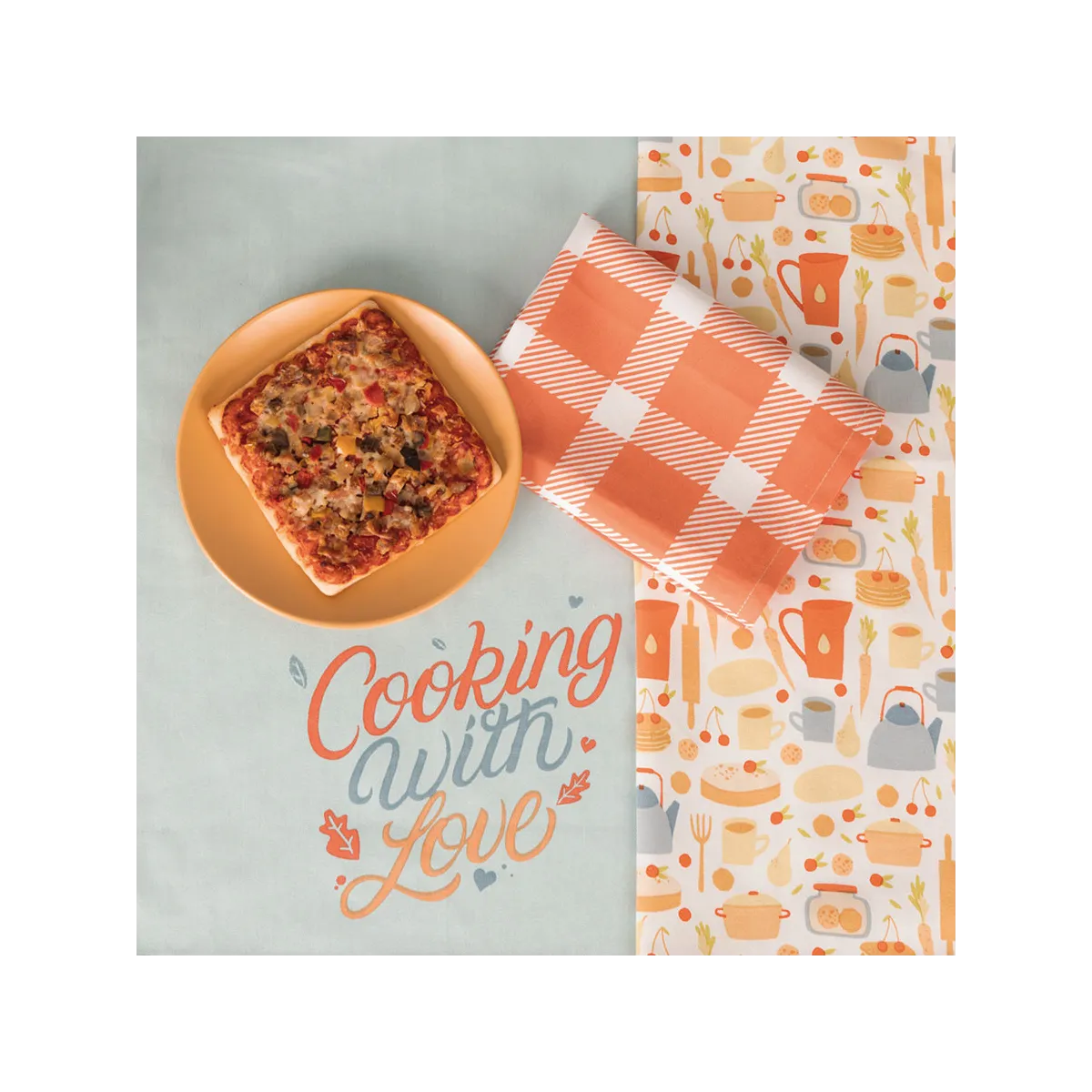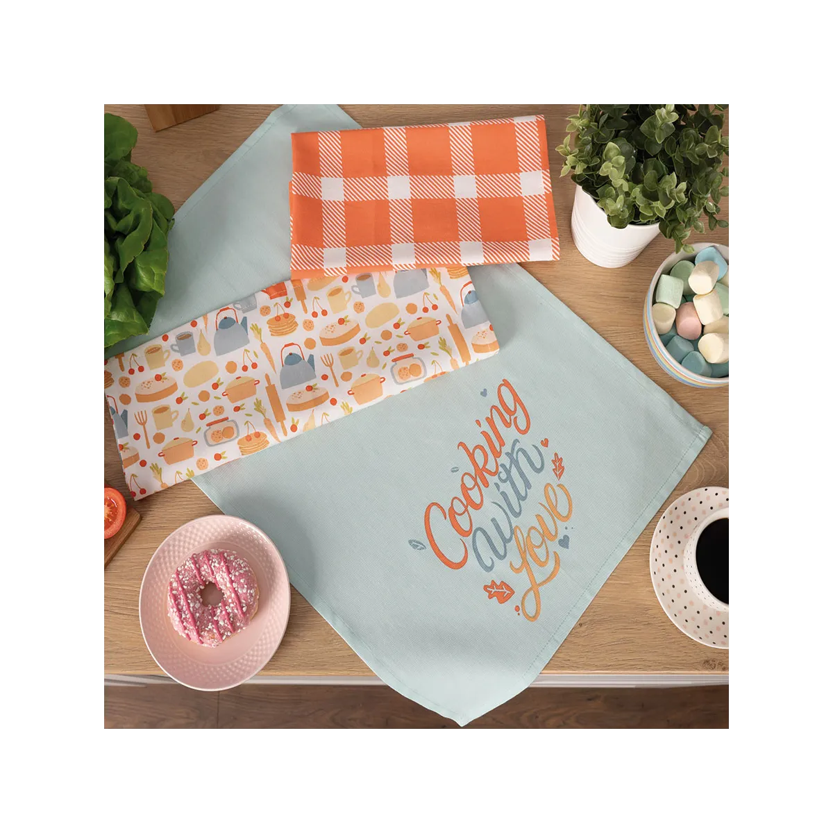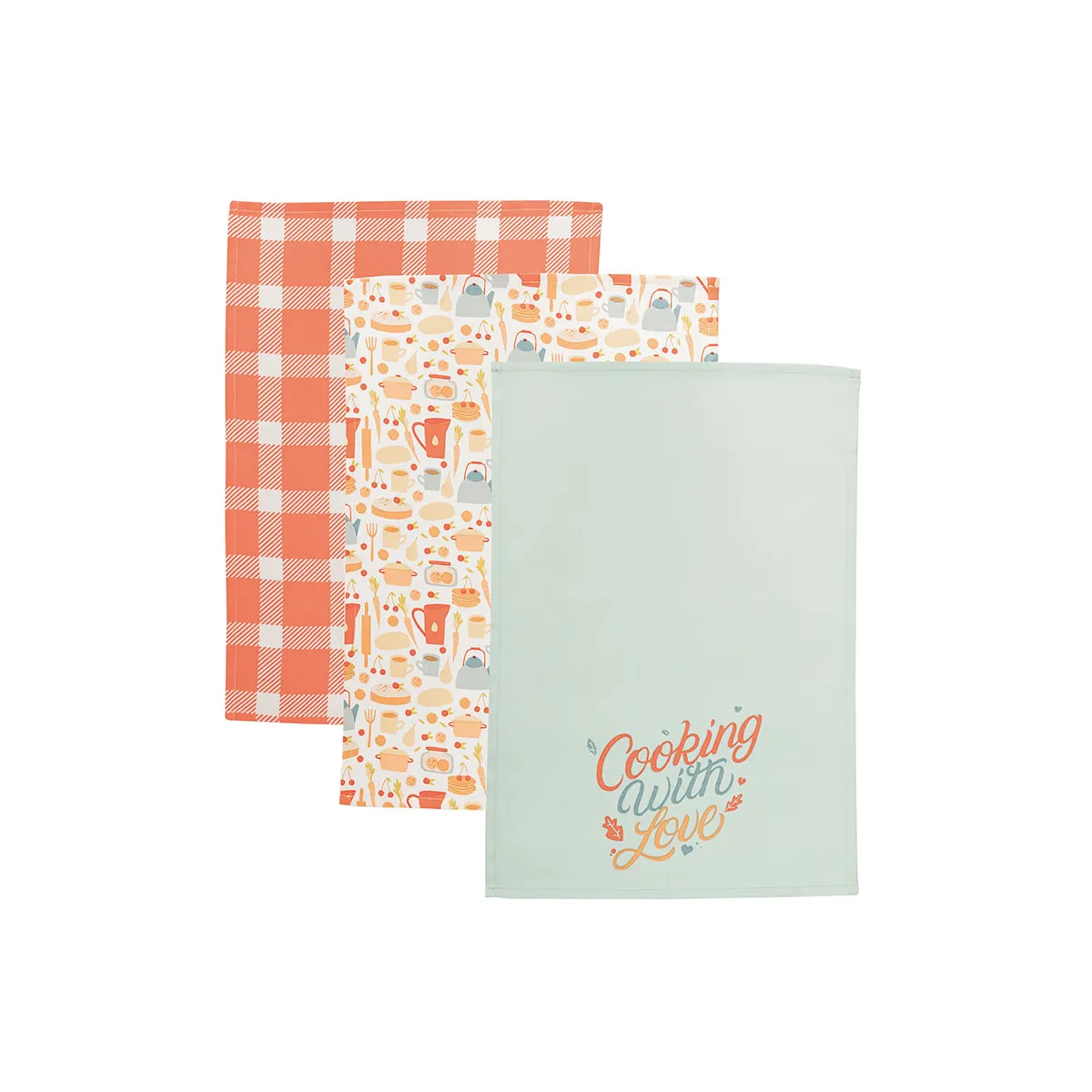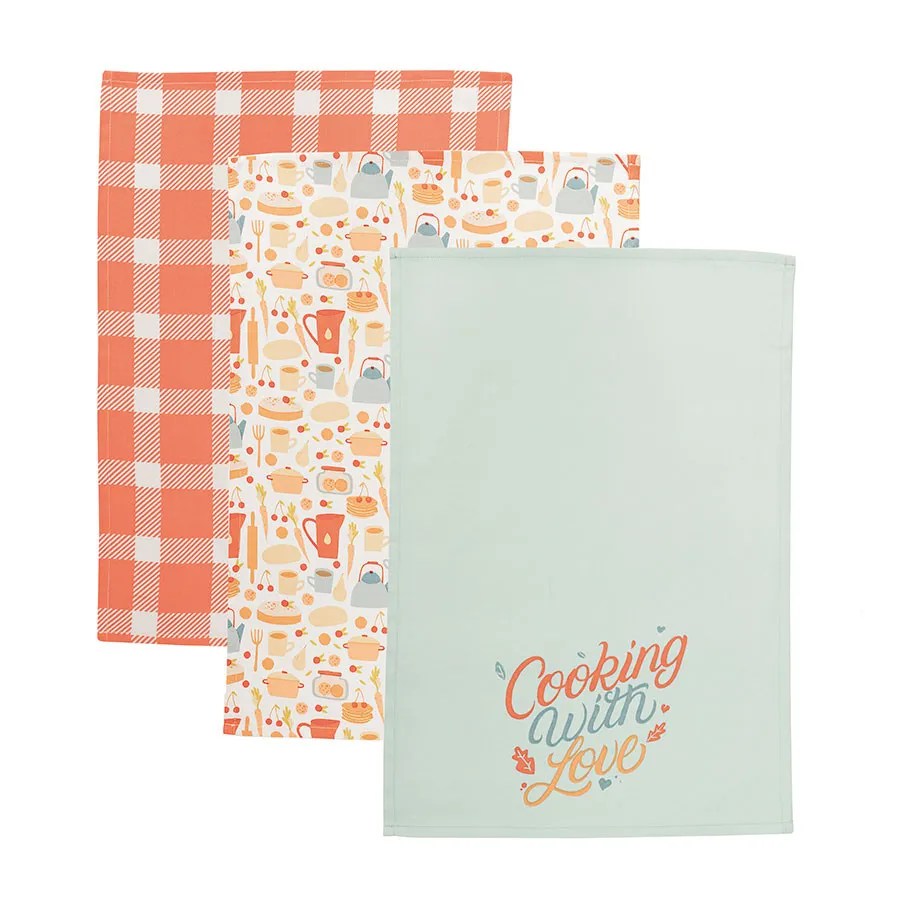 COOKING WITH LOVE – kolorowy komplet 3 ścierek kuchennych 40x60 cm