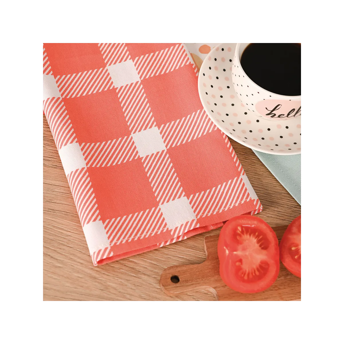 Codzienne gotowanie zyskuje nowy, radosny wymiar dzięki zestawowi ścierek COOKING WITH LOVE! Ten komplet łączy funkcjonalność z modnym wyglądem – znajdziesz tu 3 sztuki: jasną miętową ścierkę z uroczym napisem „Cooking with love”, klasyczną kratkę w odcieniach koralu oraz ścierkę z kuchennymi ilustracjami. Każda z nich ma rozmiar 40x60 cm, co sprawia, że świetnie spisują się przy wycieraniu naczyń, blatów czy polerowaniu szkła. Ich pastelowa kolorystyka i wesołe wzory odświeżą każdą kuchnię i wprowadzą pozytywny nastrój każdego dnia. 🤩