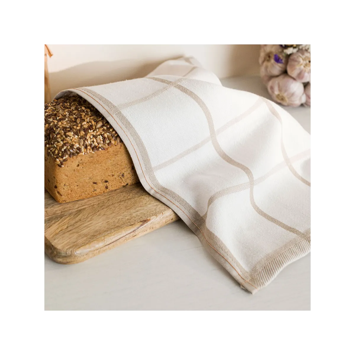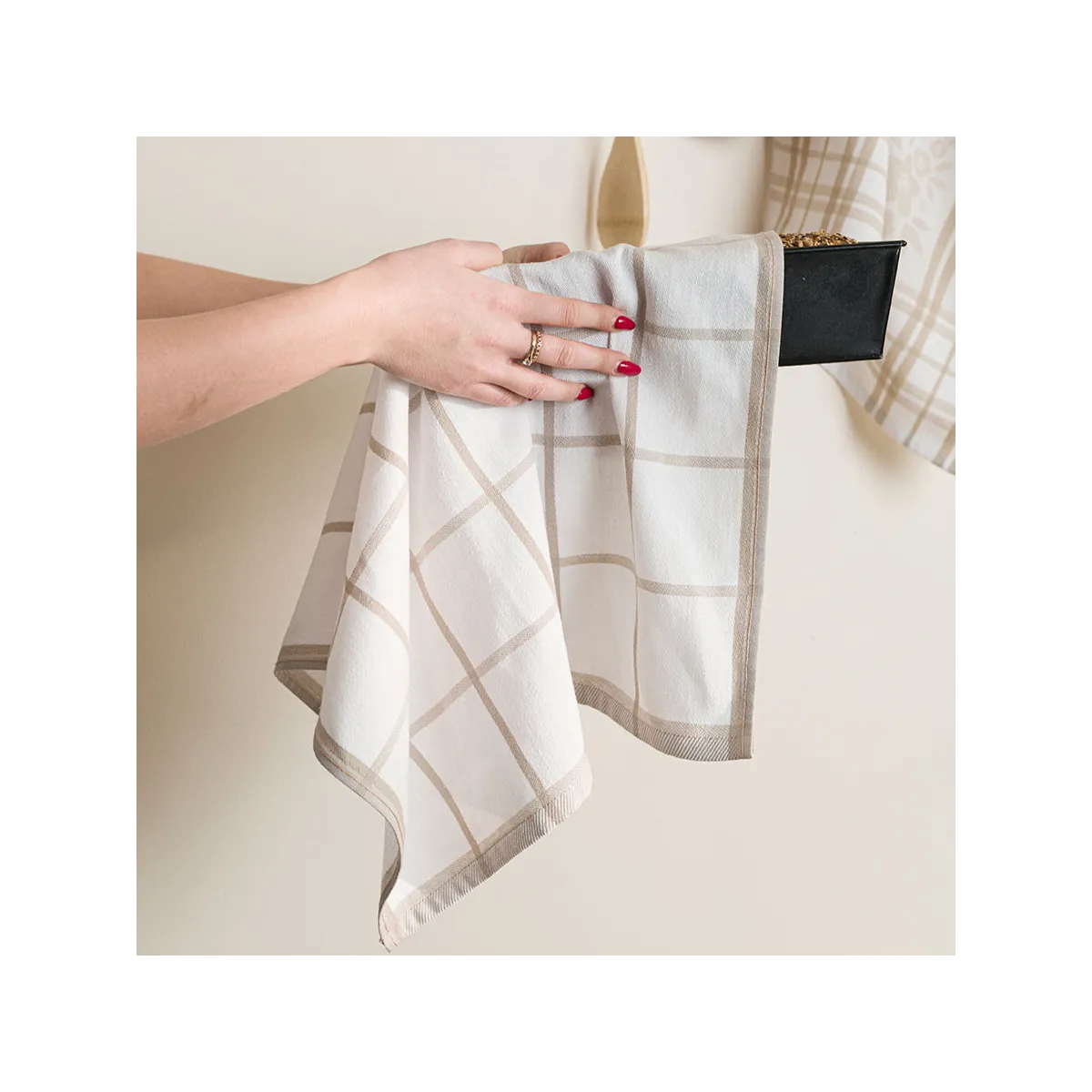Beżowa ścierka kuchenna KRATKA 50x70 cm – funkcjonalność w eleganckim wydaniu