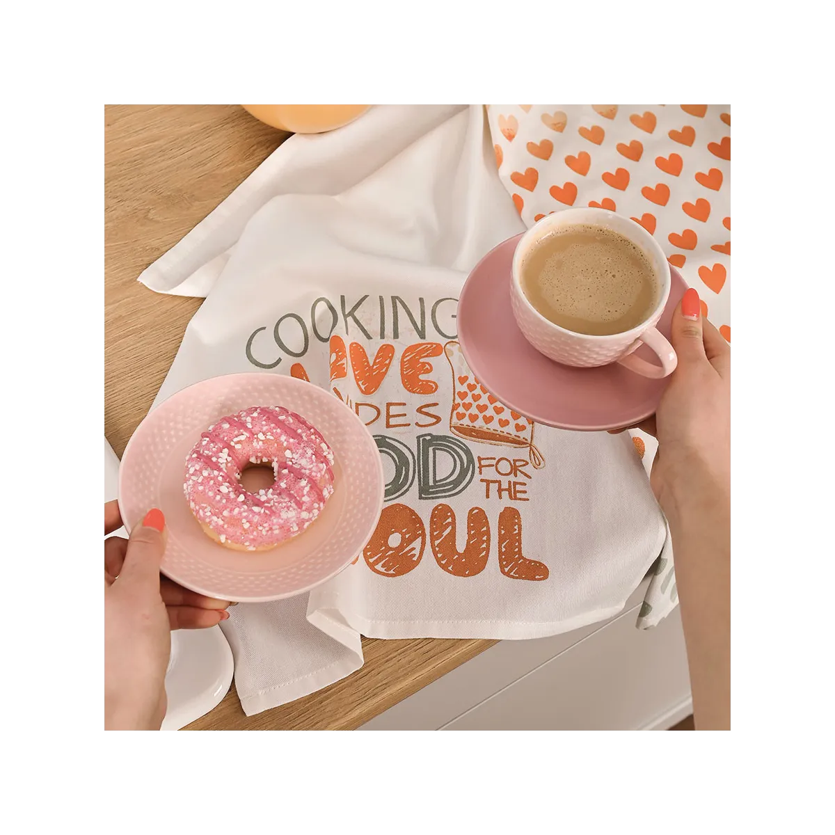 Porządki w kuchni nigdy nie były tak pełne koloru! Komplet 3 bawełnianych ścierek LOVE FOR SOUL 40x60 cm to świetny wybór dla każdego, kto lubi dodać wnętrzu trochę uroku i wygody. Ścierki zdobią modne wzory: serca, geometryczne motywy oraz inspirujący napis „Cooking love provides food for soul” – wszystko to w energetycznych odcieniach pomarańczu i szarości. Każda ze ścierek to nie tylko praktyczny pomocnik podczas gotowania czy sprzątania, ale i stylowa dekoracja, która ożywi każdą kuchenną aranżację. 😊✨