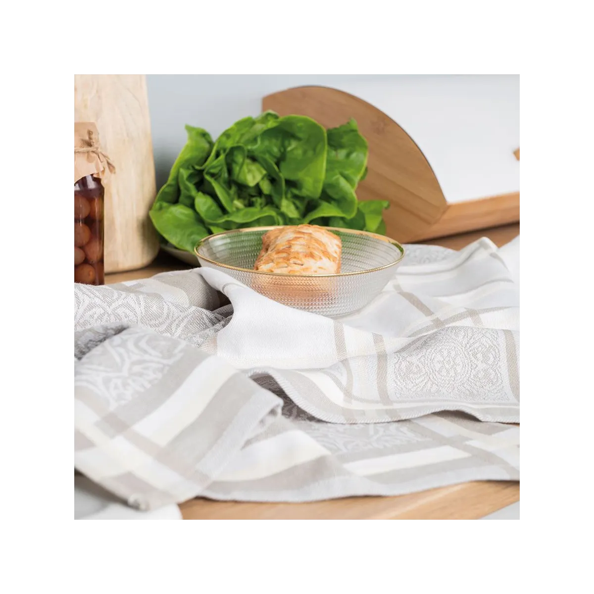 Beżowa barwa to klasyka, która nigdy nie wychodzi z mody. Dzięki niej ścierka zyskuje ciepły, naturalny charakter, a jednocześnie maskuje drobne zabrudzenia. Klasyczny wzór kratki z ornamentami dodaje całości elegancji, sprawiając, że jest nie tylko praktycznym dodatkiem, ale również dekoracją Twojej kuchni.