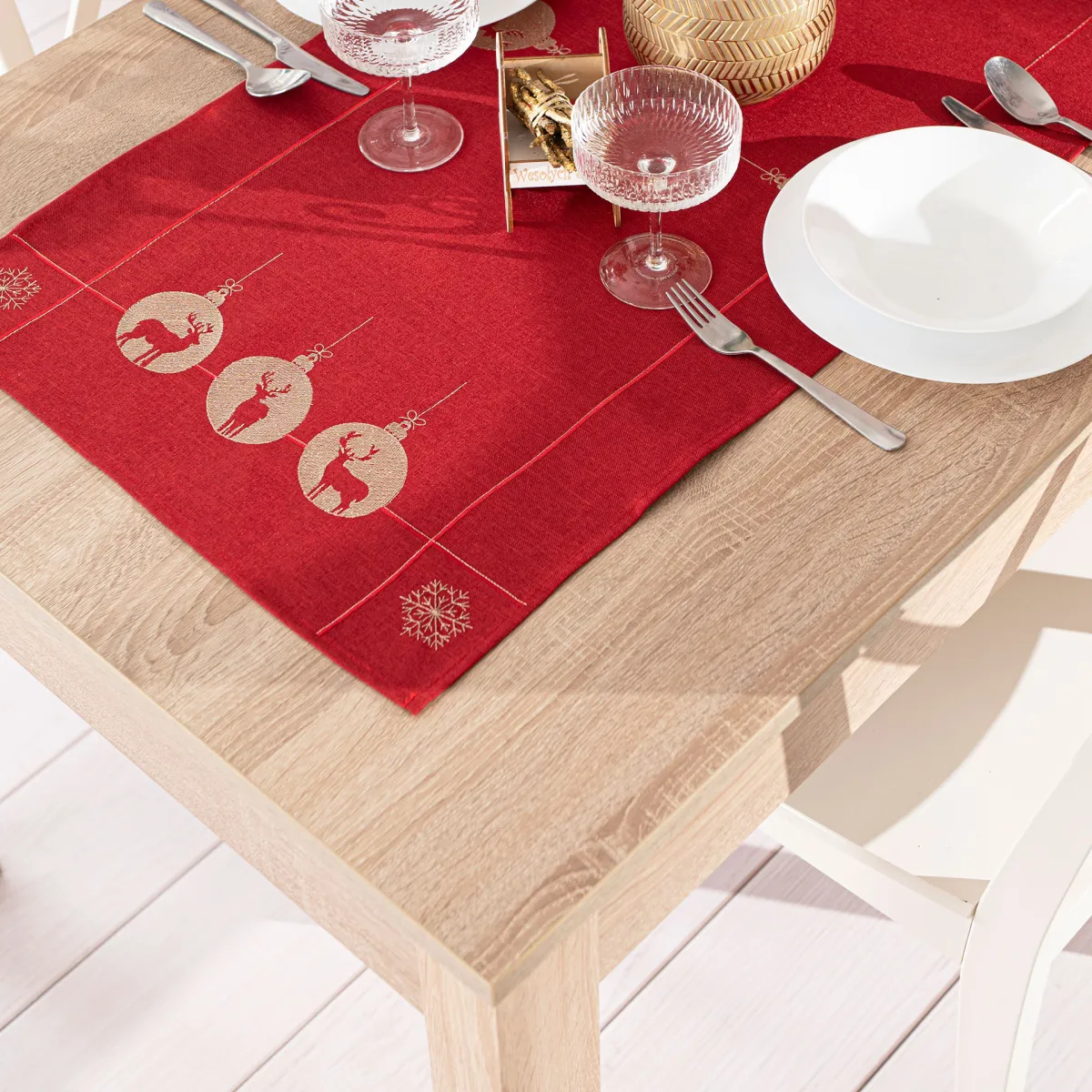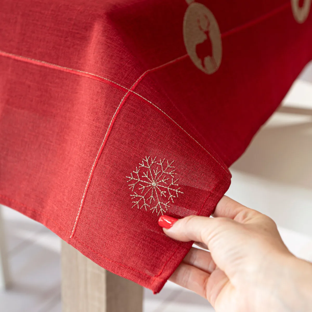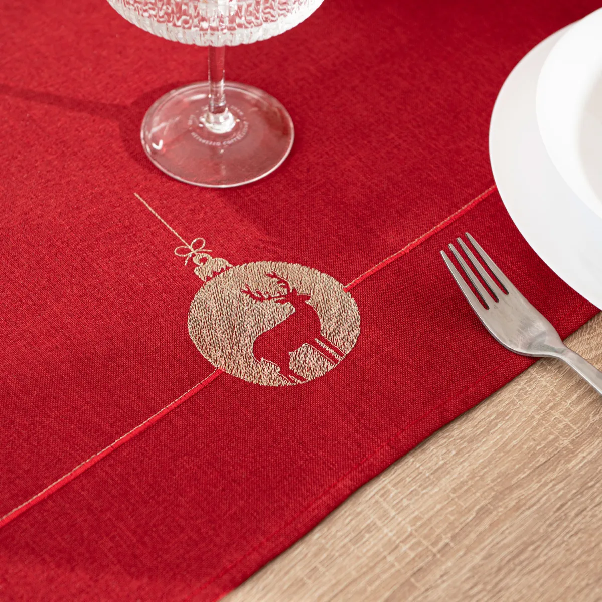 - Świąteczny haft reniferów Subtelnie połyskuje, budując nastrojową, elegancką oprawę stołu.