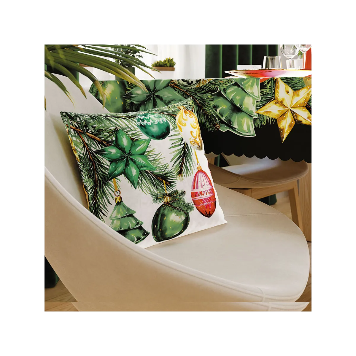 Ta poszewka pięknie dopełni świąteczną aranżację salonu, sypialni czy jadalni. Świetnie komponuje się z gładkimi tekstyliami w zieleni, czerwieni lub złocie, tworząc spójny, przytulny wystrój.