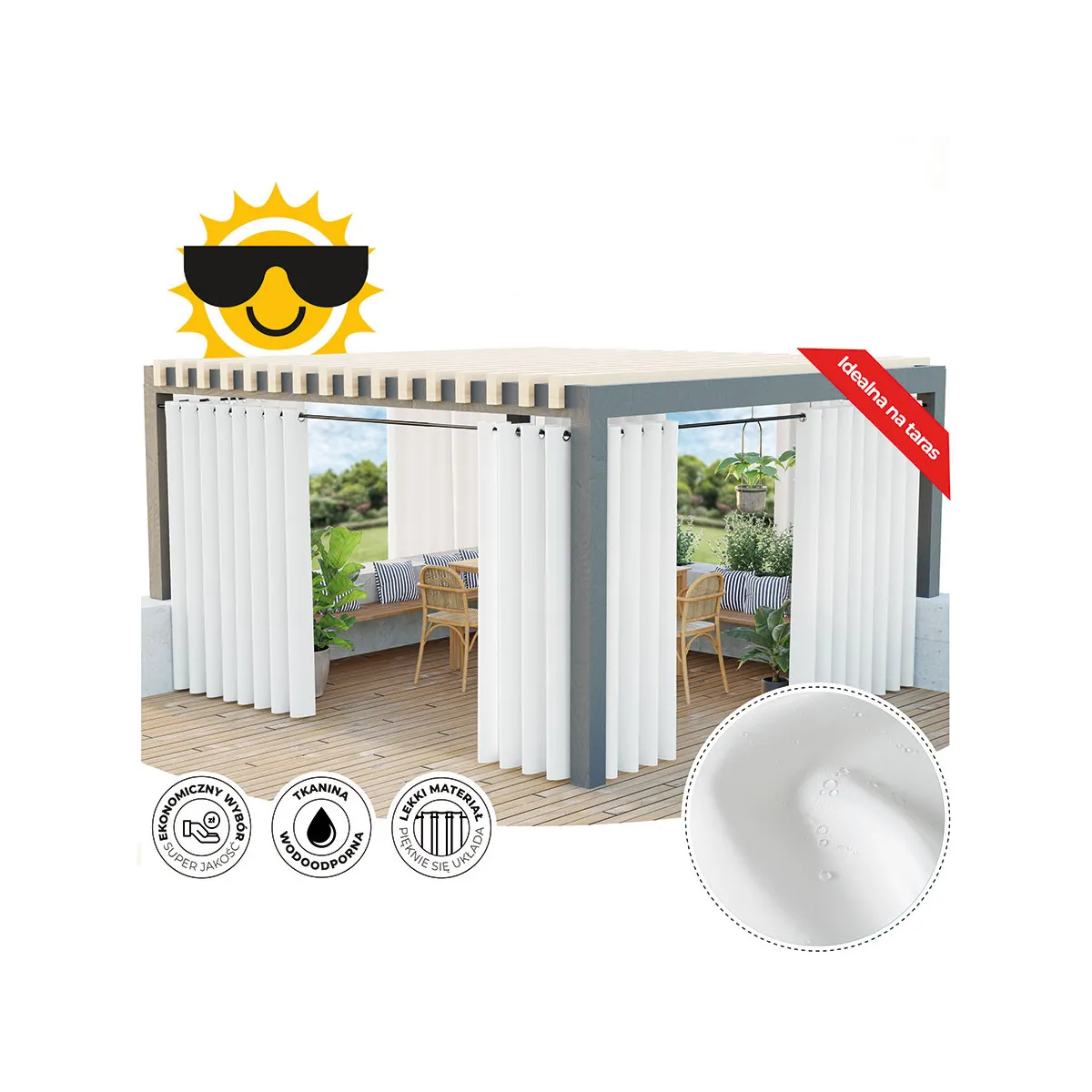 Gramatura:Raport:Typ/Rodzaj:Skład: Zasłona ogrodowa Gardenia wodoodporne wykończenie chroni przed deszczem oraz wilgoci, dzięki czemu będzie bardziej odporna na czynniki zewnętrzne. Przeznaczona jest do użytkowania na tarasie, pergoli, balkonie czy altanie. Zasłona posiada 8 metalowych przelotek wykonanych ze stali nierdzewnej.Kolekcja zasłon Gardenia składa się z siedmiu kolorów dostępnych w różnych rozmiarach.