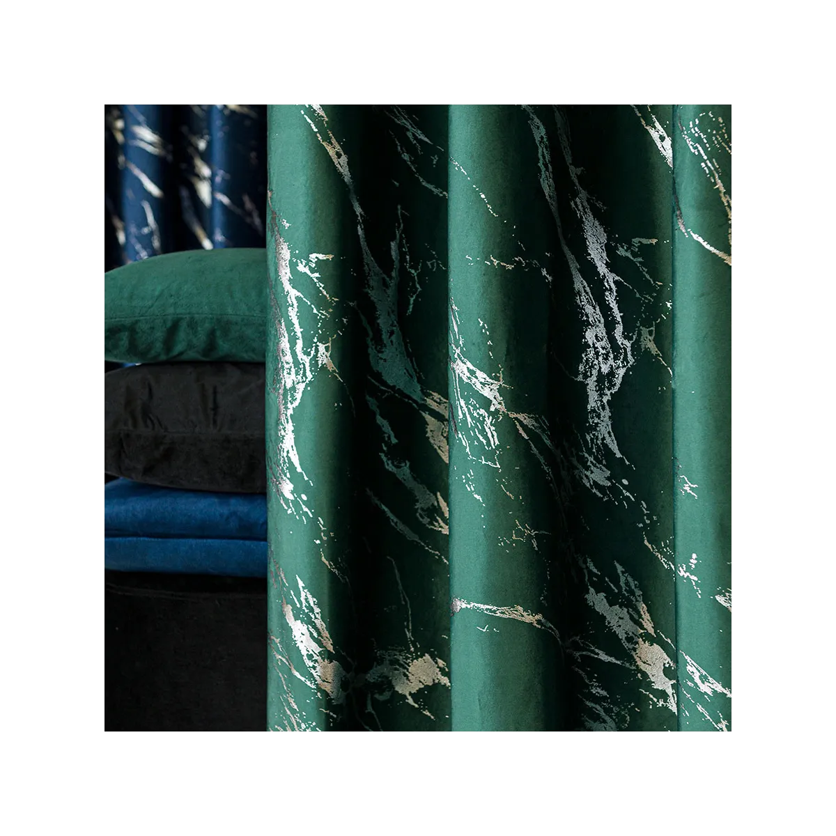 Zasłona gotowa na przelotkach o wymiarach 140 x 250 cm. Wykonana z welwetowego materiału z dekoracyjnym jednostronnym srebrnym marmurowym nadrukiem to połączenie elegancji i nowoczesności.Zasłony MARMA dostępne są w dwunastu kolorach. Skład: 100% Poliester Gramatura: 210g/m2Towar pakowany po 22 szt. w kartonie.