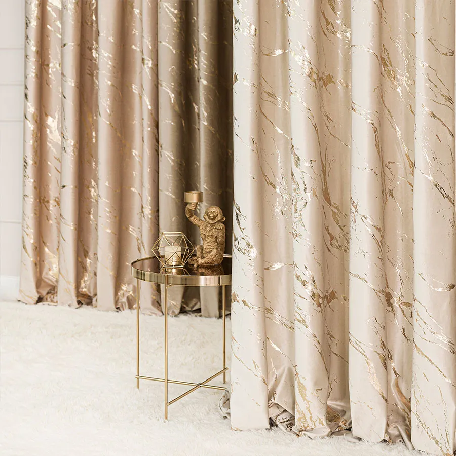 Stwórz wyjątkowy klimat w swoim wnętrzu z zasłoną MARMA w rozmiarze 140x250 cm! Miękki, luksusowy welwet w jasnym kremowym kolorze ozdobiony przecieranym, złotym nadrukiem sprawia, że każde pomieszczenie nabiera blasku i stylowej elegancji. Ten subtelny marmurowy wzór znakomicie odbija światło i efektownie podkreśla charakter zarówno nowoczesnych, jak i klasycznych aranżacji.✨ Zasłona MARMA to gotowa dekoracja okienna na metalowych przelotkach, dzięki którym montaż trwa dosłownie chwilę. Dodaj wnętrzu nutę luksusu i ciesz się praktyczną ozdobą na co dzień! 🤗