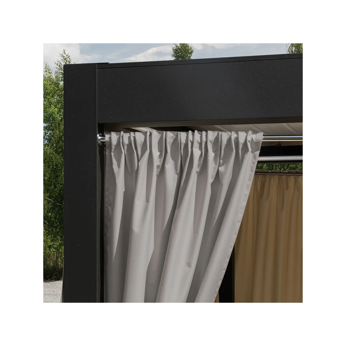 Zasłona ogrodowa Gardenia wodoodporne wykończenie chroni przed deszczem oraz wilgoci, dzięki czemu będzie bardziej odporna na czynniki zewnętrzne.Przeznaczona jest do użytkowania na tarasie, pergoli, balkonie czy altanie. Zasłona wykończona taśmą wielofunkcyjną z możliwością zawieszenia na żabki, agrafki oraz tunel. Kolekcja zasłon Gardenia składa się z siedmiu kolorów dostępnych w różnych rozmiarach.
