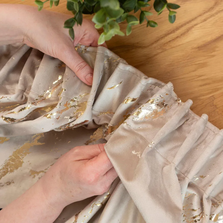 Zasłona gotowa na taśmie o wymiarach 140 x 250 cm. Wykonana z welwetowego materiału z dekoracyjnym jednostronnym złotym marmurowym nadrukiem to połączenie elegancji i nowoczesności. Zasłony MARMA dostępne są w dwunastu kolorach. Skład: 100% Poliester Gramatura: 210g/m2Towar pakowany po 22 szt. w kartonie.