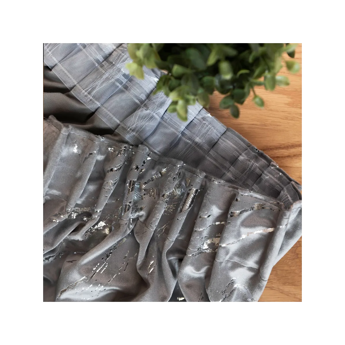 Zasłona gotowa na taśmie o wymiarach 140 x 250 cm. Wykonana z welwetowego materiału z dekoracyjnym jednostronnym srebrnym marmurowym nadrukiem to połączenie elegancji i nowoczesności.Zasłony MARMA dostępne są w dwunastu kolorach. Skład: 100% Poliester Gramatura: 210g/m2Towar pakowany po 22 szt. w kartonie.